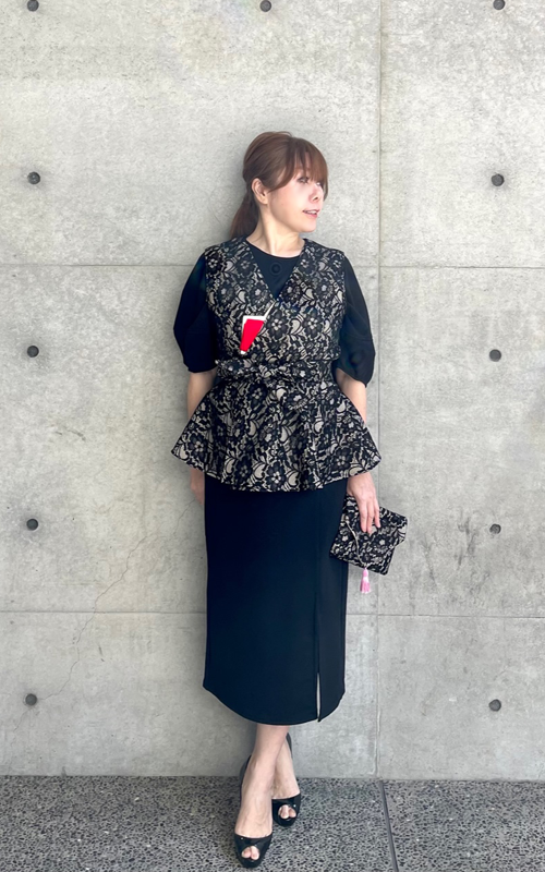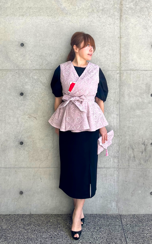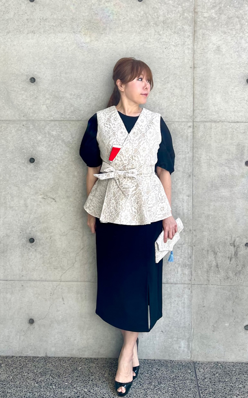 茶麗ーCHAREI・お稽古・リバーレース・ベスト(ノアール)