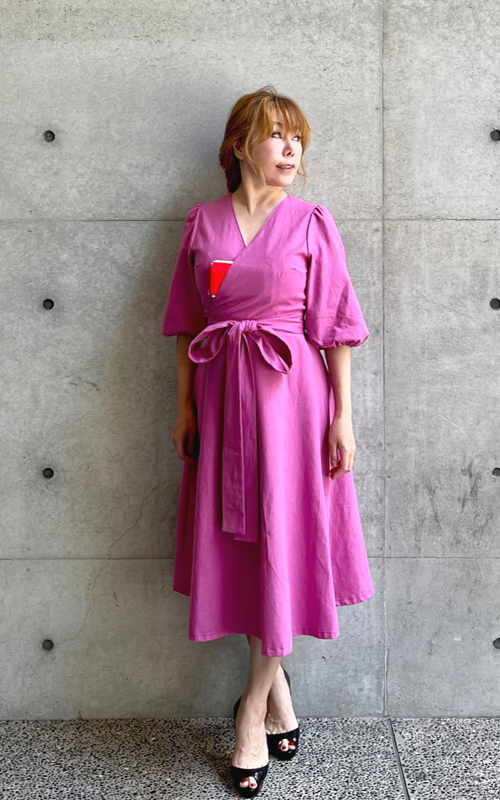 茶麗ーCHAREI・リネンコットン・茶道お稽古ワンピース(マゼンタ)