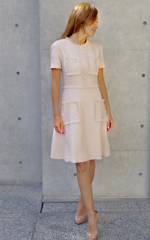 《Tokyo Soirée》Luxury・ツイード・フレアー・ワンピ(サーモンピンク)