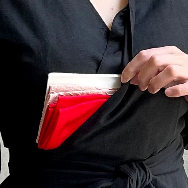 左裏には袱紗や懐紙を内蔵できるスラッシュポケットが。