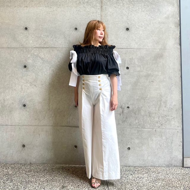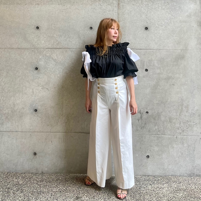 夏の軽やかさと、品あるフェミニニティを纏った、オフショルダーブラウスです。