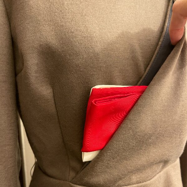 左胸裏の滑りにくい綿製ポケットが、所作を支え、