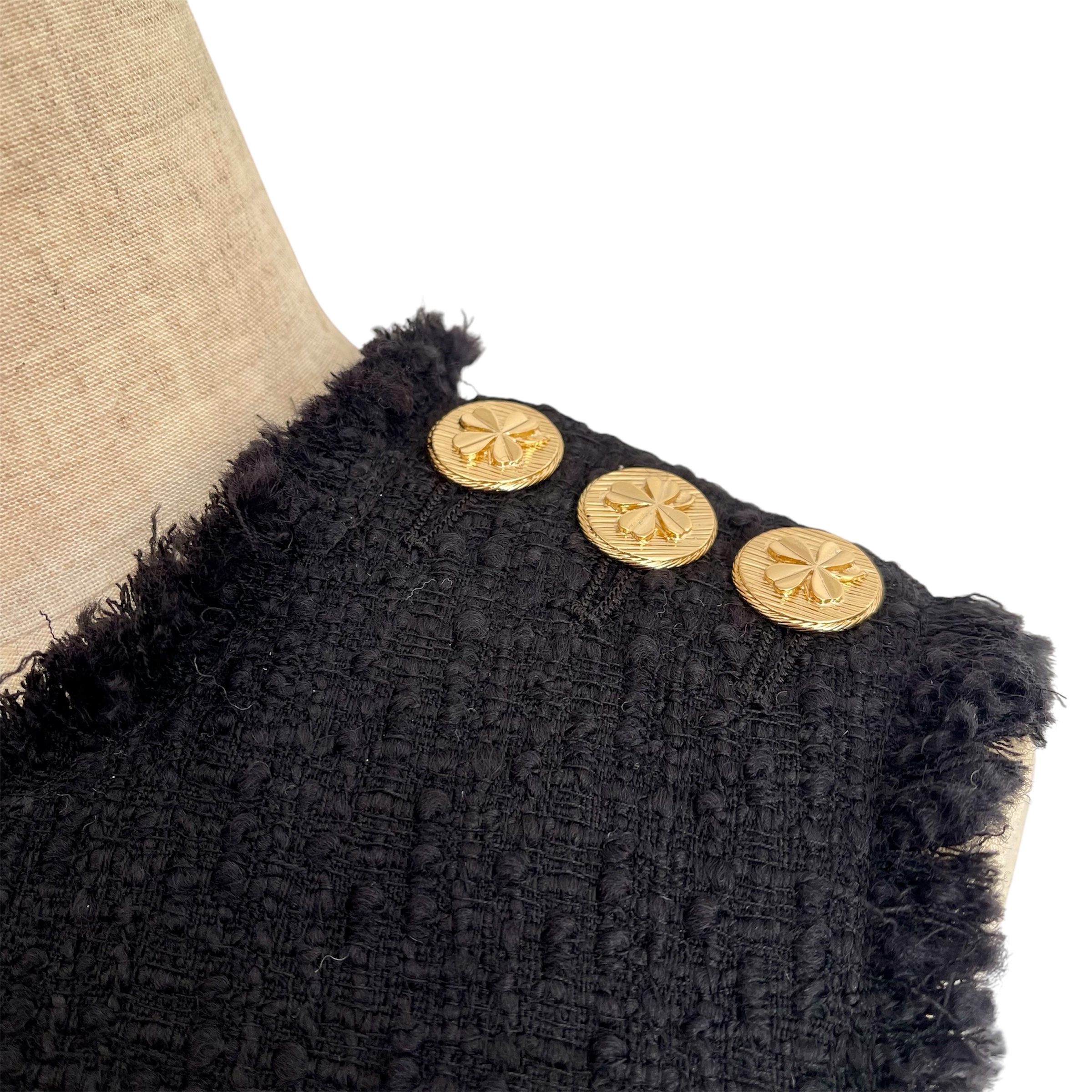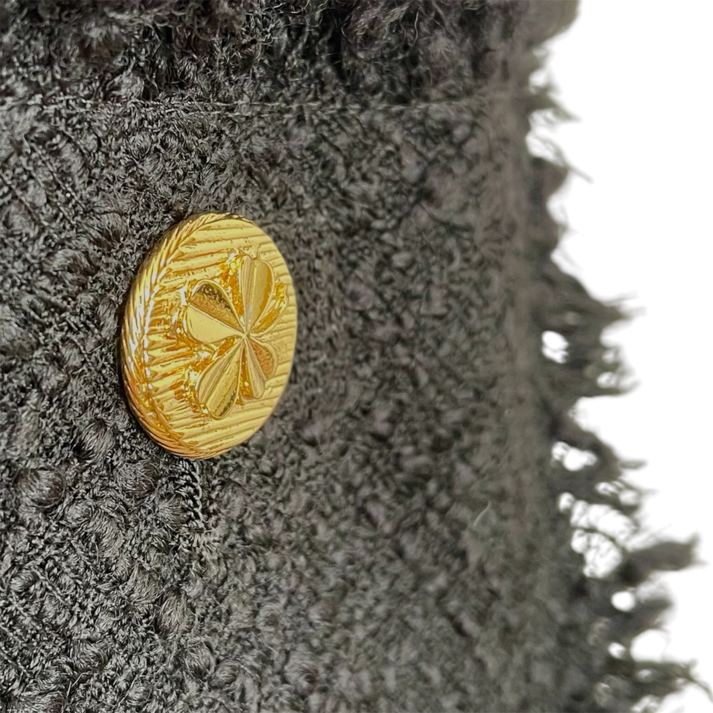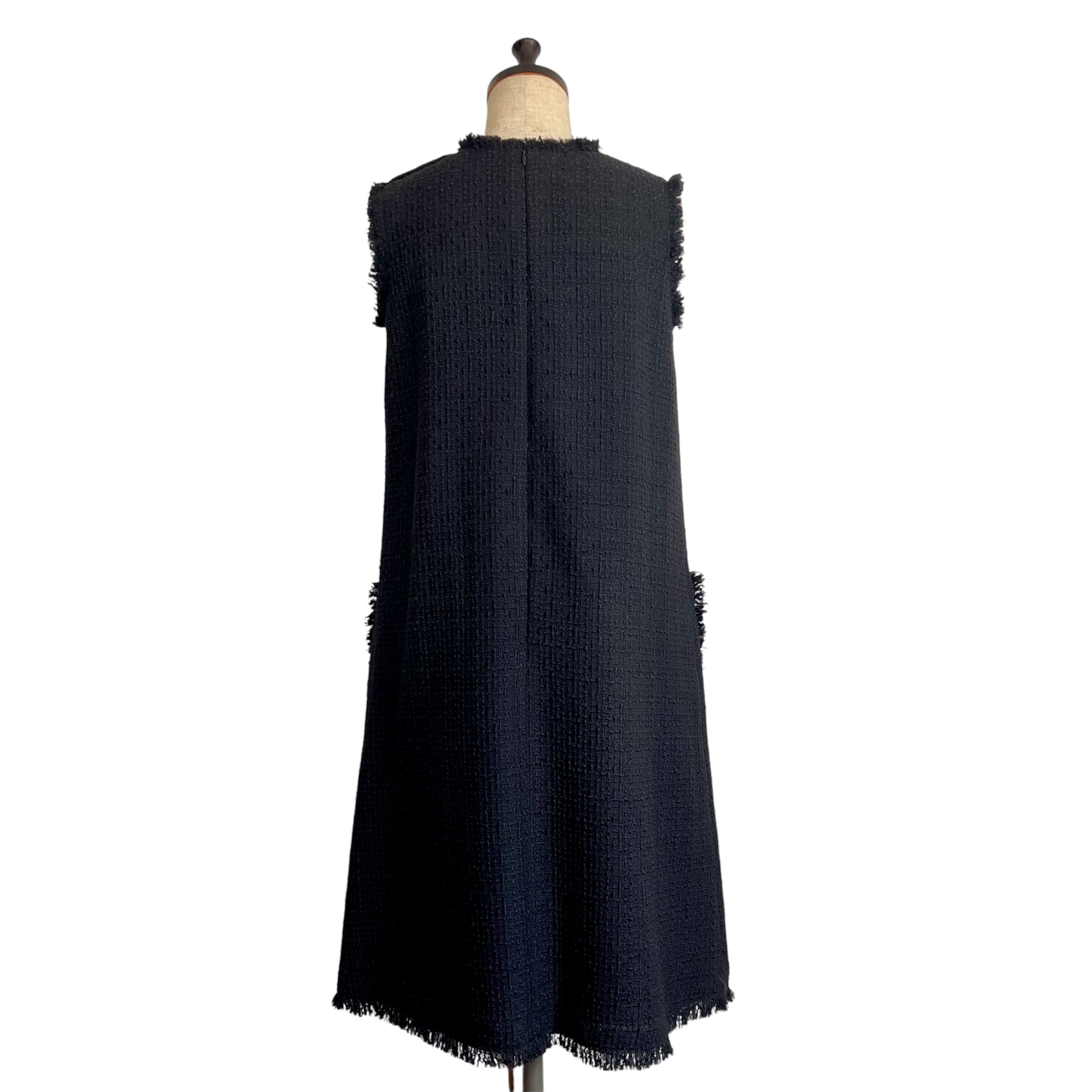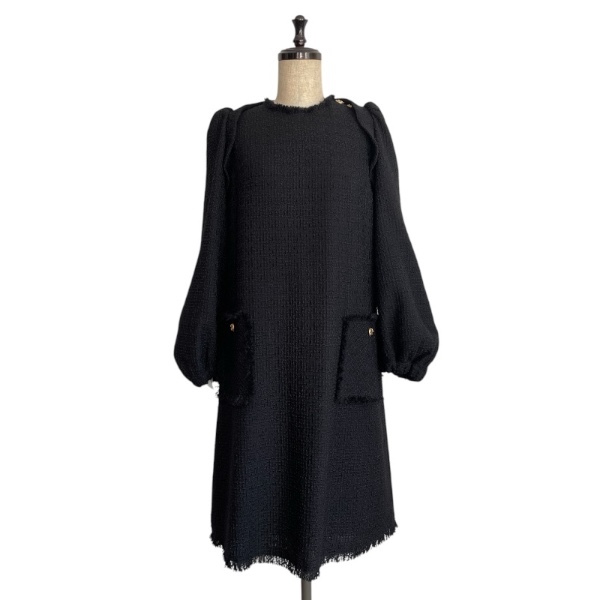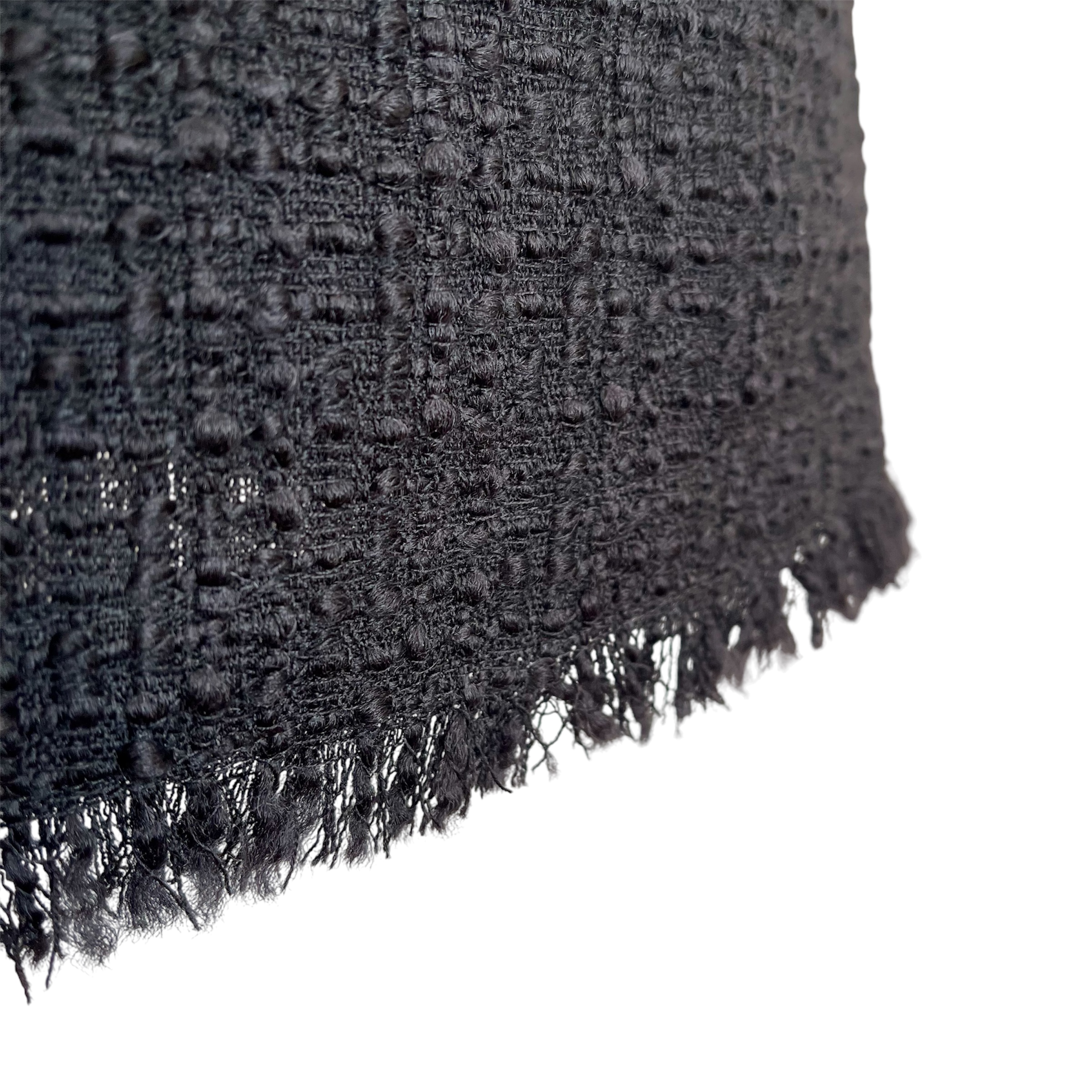 黒一色ながら、イタリア製ツイード特有の深みのある光の陰影が立ち上がり、