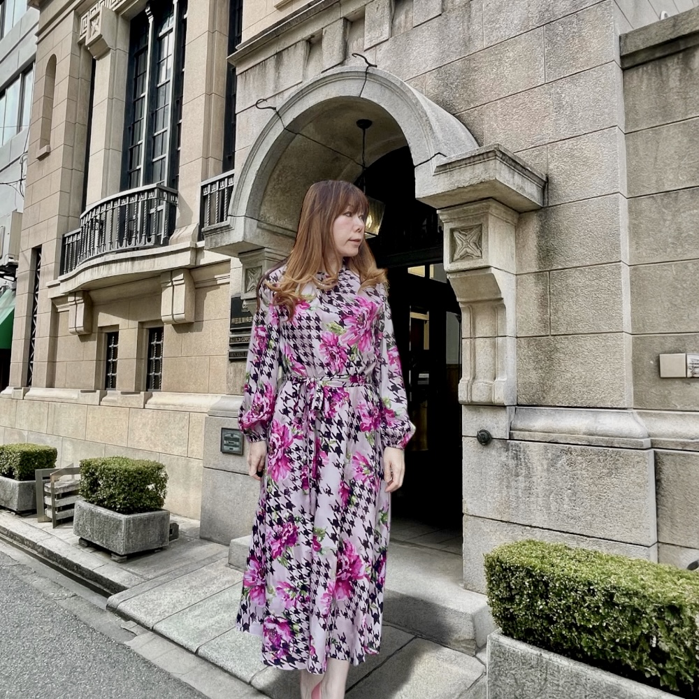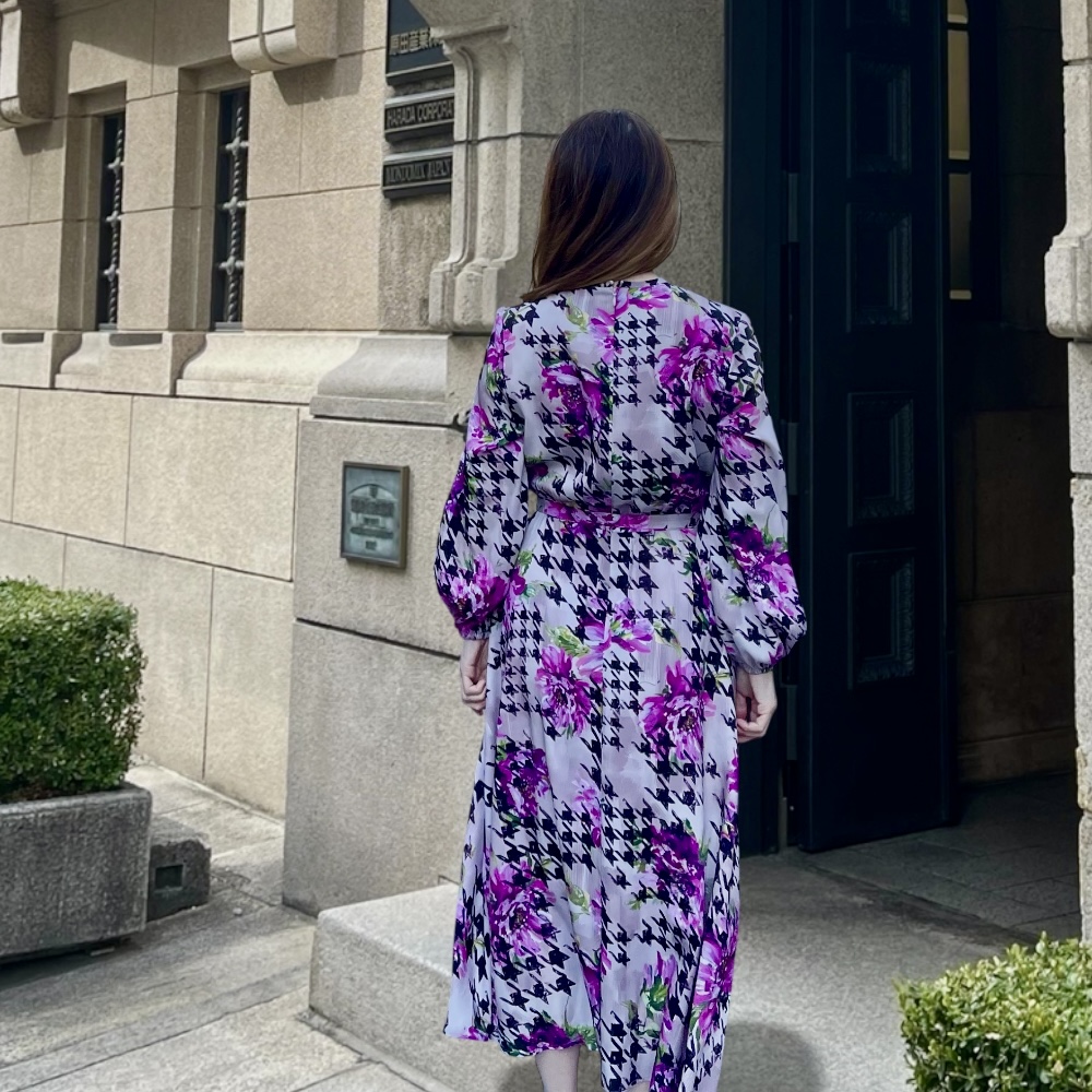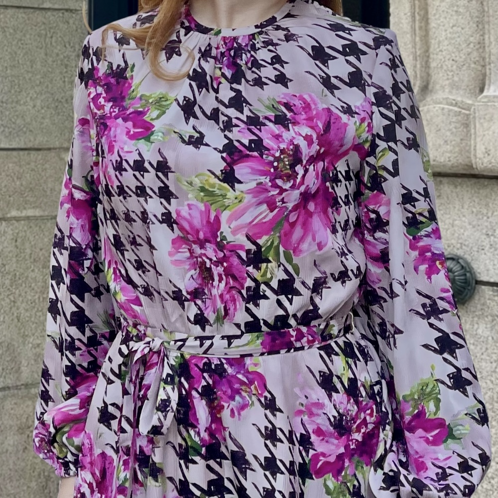 千鳥格子に大ぶりの華やかな花柄がイタリアらしいプリントです。